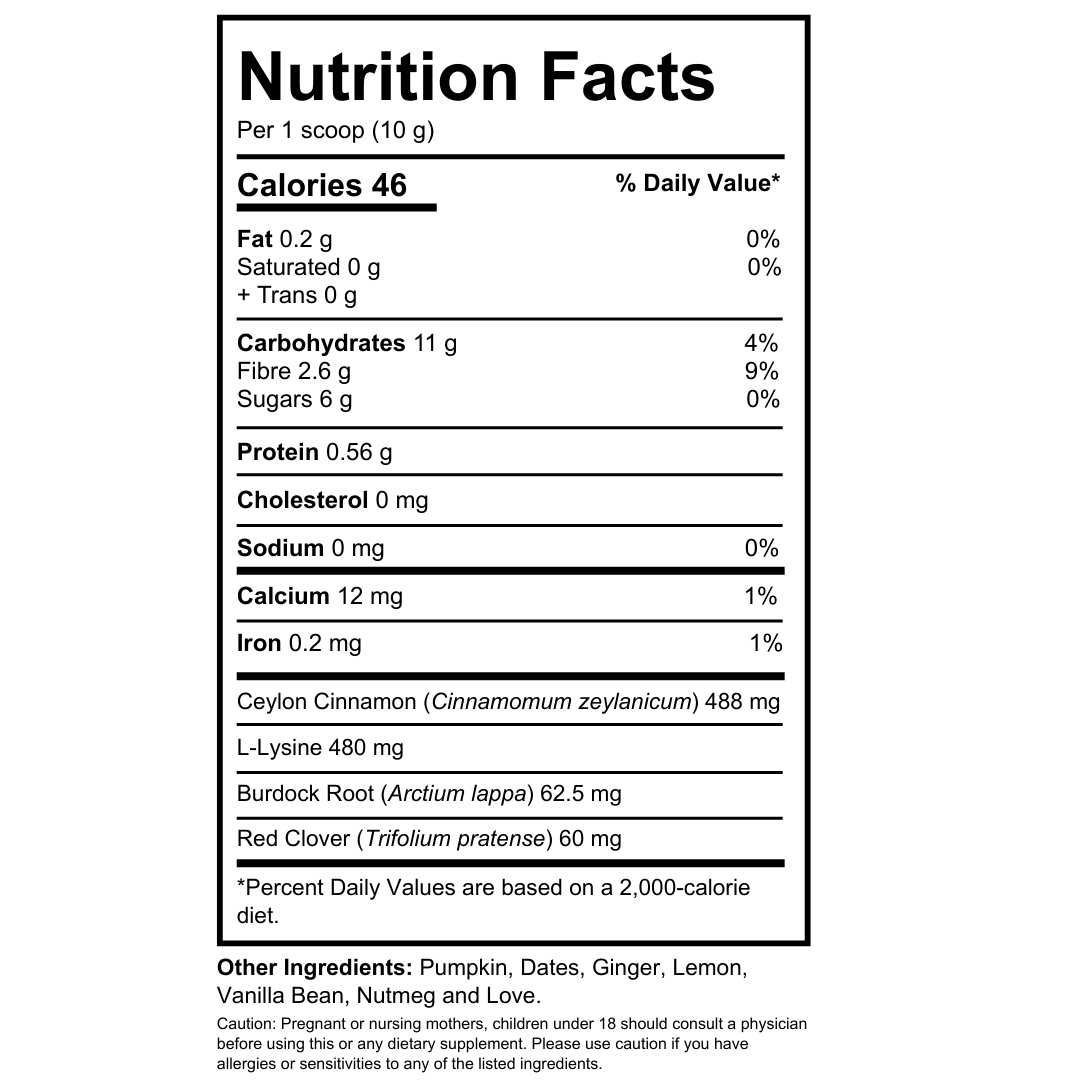 Experience the elegance of autumn with our limited edition Pumpkin Spice Latte a comforting embrace in a cup. Silky and warmly spiced, reminiscent of a perfectly baked pumpkin pie. Crafted with intention, this exquisite blend features slow-release dates to help prevent blood sugar drops, supporting those managing sugar cravings and overeating with grace and care.
